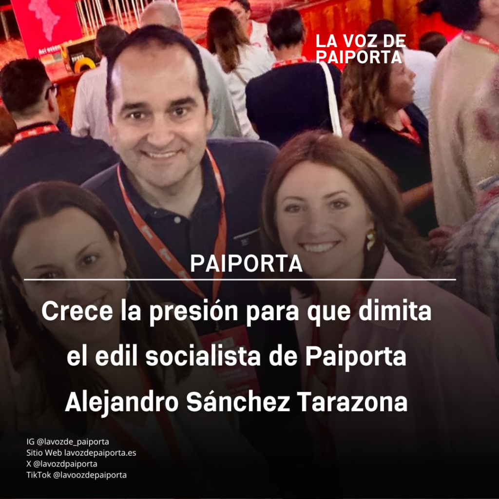 La petición también va dirigida al propio Partido Socialista de Paiporta, al que se le reclama que dé un paso al frente y expulse a Alejandro Sánchez Tarazona tanto del equipo de gobierno local como de sus filas. La situación ha generado una fuerte indignación ciudadana, que exige responsabilidades políticas y un mínimo de respeto institucional.