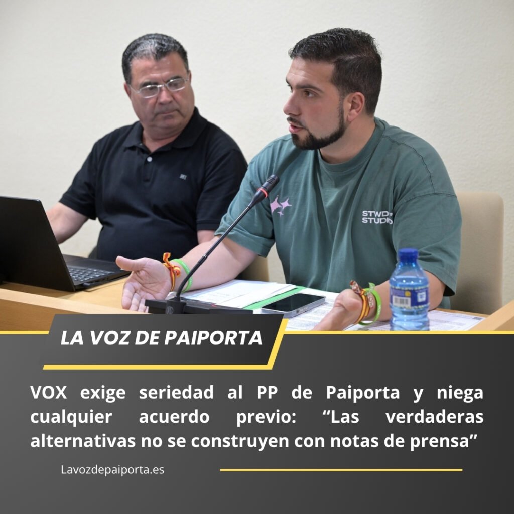 Paiporta, 27 de junio de 2025. El Grupo Municipal VOX en Paiporta ha respondido con firmeza a las declaraciones difundidas por la portavoz del Partido Popular, Chelo Lisarde, quien ha insinuado la existencia de un acuerdo previo con VOX para formar una alternativa de gobierno al PSOE. Daniel Furió, portavoz de VOX, ha desmentido categóricamente la existencia de contactos formales entre ambos grupos y ha subrayado que “hasta la fecha, no hemos recibido ninguna comunicación formal ni propuesta directa de la portavoz del PP para construir una alternativa real de gobierno al PSOE”.